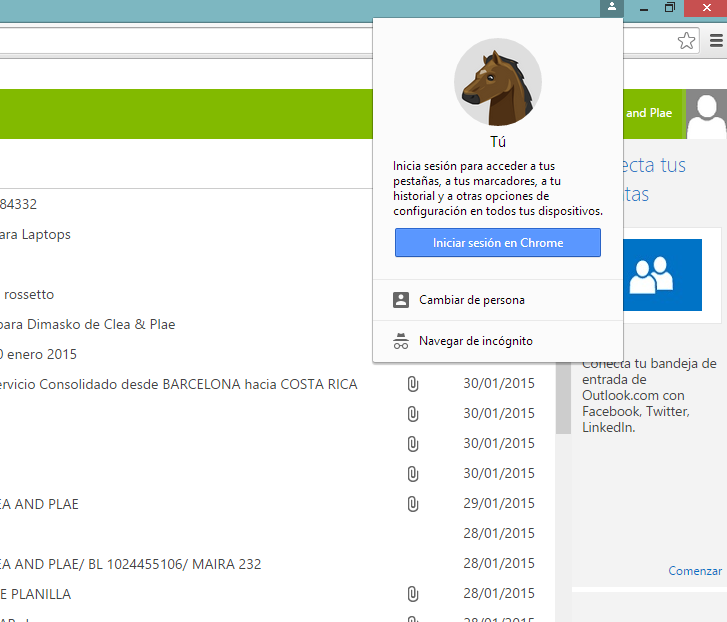 Menú de cuenta de usuario